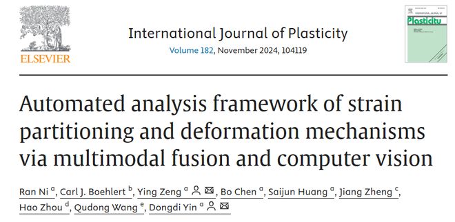 近日,西南交通大学尹冬弟教授、曾迎副教授,博士生倪然等针对上述难题,基于多模态数据融合和计算机视觉,提出了一种应变分配与变形机制的自动分析框架,并成功应用于Mg-Y合金的变形研究,从而验证了此分析框架的有效性。此算法特别考虑了晶内和晶间的变形协调与竞争关系,可以在纳米分辨率与大视场下,自动地、统计地、定量地分析晶内滑移活性、晶间滑移转移、晶界滑移、以及相关的应变分配。此框架可以帮助深入理解包括镁合金在内的金属材料的变形行为与协调机制。相关工作以“Automated analysis framework of strain partitioning and deformation mechanisms via multimodal fusion and computer vision”为题发表在金属材料和固体力学领域高水平期刊International Journal of Plasticity。论文主要合作者还包括密歇根州立大学Carl J. Boehlert教授、辽宁材料实验室周浩研究员,重庆大学郑江副教授,上海交通大学王渠东教授。