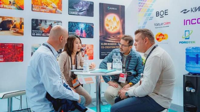 《我的阿勒泰》《国色芳华》《新世界加载中》《欢迎来到麦乐村》《幸福草》《六姊妹》《猫行东方》《登月进行时》等优秀京产影视剧在超高清视听展示区轮番播出,爱奇艺、华策影业、快手、完美世界影业、喜嘻影业、优酷等视听企业联手向欧洲观众推介优秀的中国超高清视听作品。在现场,快手的“可灵导演计划”更是引来了关注AIGC视听内容创作者的兴趣,了解计划详情。