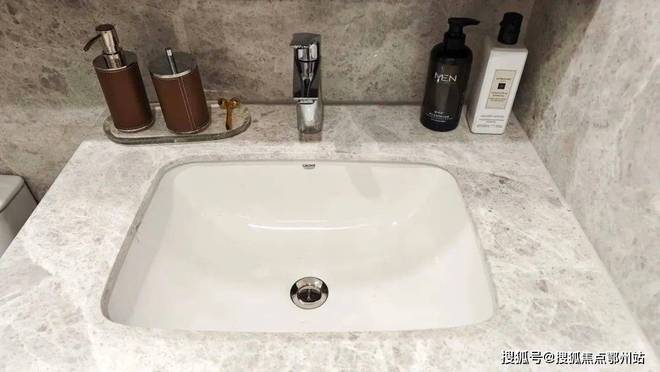 卫浴空间同样精彩,采用高仪的台盆、龙头、智能马桶、淋浴花洒等,主卫创新定制“美妆冰箱”,满足业主对美妆、护肤用品冷藏的需求,足见开发商对成本的舍得。