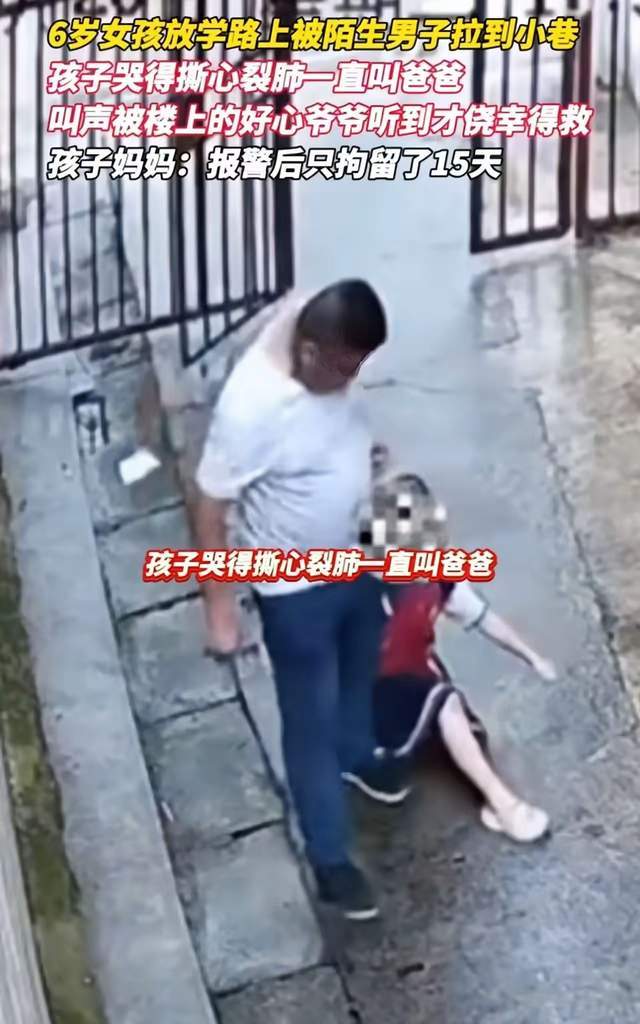 惊险! 湖南娄底女童放学遭陌生男强拉入巷! 幸好大叔及时制止! 宝妈质疑:拘留15天够吗?