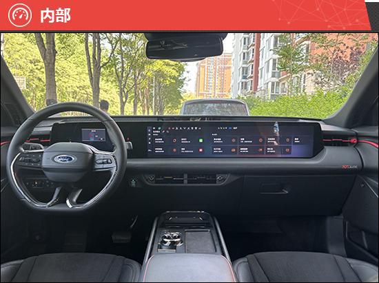 在内部感受评价中,长安福特蒙迪欧运动版采用全黑内饰配色,搭配空调出风口点缀的红色装饰,以及方向盘和座椅等部位的红色缝线,营造出浓浓的运动氛围。中控台配备长达1.1m的连体屏幕,融合数字仪表盘和中控屏,科技感满满。前排手机无线充电板位置合理且造型宽大,可以适应不同尺寸的手机,缺点在于底部未提供通风口,会影响散热效果。