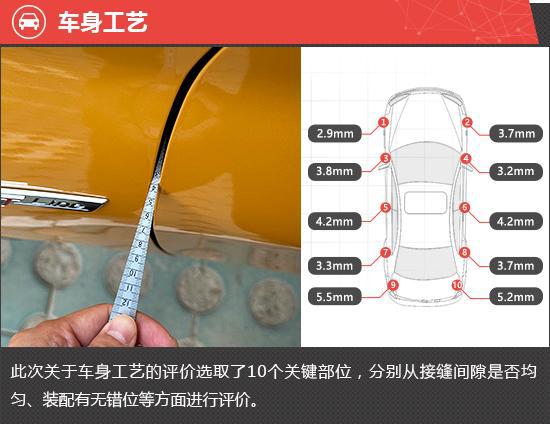 在车身工艺测试环节,整车共选取10个关键部位,每个关键部位都会选取3个关键点进行测量,以评价各关键部位缝隙的均匀程度。从测试结果来看,长安福特蒙迪欧运动版两侧前车门与后车门连接处、两侧后翼子板与后备厢连接处缝隙均值偏高,另外,前翼子板与发动机舱盖连接处还存在左右缝隙均值相差较大的情况,影响了最终测试成绩。